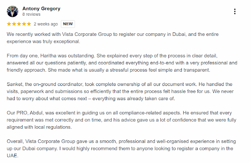 Vista stands out because we don’t treat business setup as a transaction. We treat it as the beginning of your business journey in the UAE, and we take that responsibility seriously.